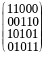 Графи можна задавати також за допомогою матриць, занумерувавши всі вершини графа G натуральними числами від 1 до n. Матрицею суміжності A графа G називається квадратна nхn-матриця, в якій елемент aij i-го рядка і j-го стовпчика дорівнює 1, якщо вершини vi та vj з номерами i та j суміжні, і дорівнює 0 в іншому випадку.