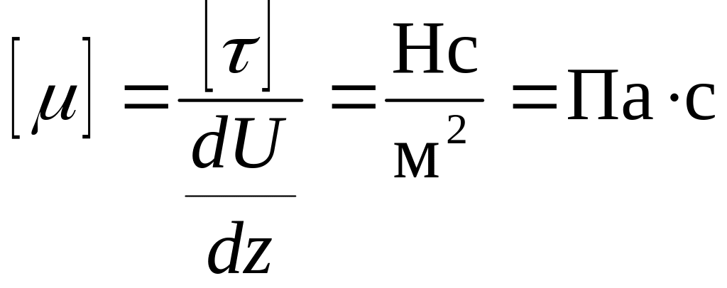 Между слоями жидкости, движущимися со скоростями, отличающимися друг от друга на величину dU, возникает касательное напряжение t:
