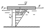 Вязкостью называется стремление жидкостей к сдвигу. Если к пластине (рис. 1.1) приложить силу F, то после некоторого интервала времени установится равномерное движение с некоторой скоростью U0.