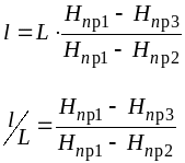 Во всех случаях проектирования рельефа возникает необходимость нахождения точки с заданной отметкой Нс на прямой, проходящей через точки А и В с известными отметками На и Нв. Возможны несколько вариантов решения этой задачи: