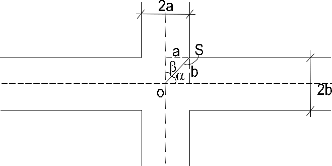 На участке пересечения улиц возможны три варианта вычисления угловых и линейных элементов.
