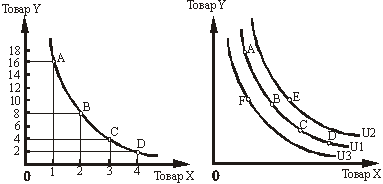 Кривая безразличия – это линия постоянного уровня удовлетворенности потребителя. Кривая безразличия показывает различные комбинации двух товаров, имеющих одинаковую полезность для потребителя: