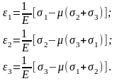 Обобщенный закон Гука (закон Гука при объемном напряжении):