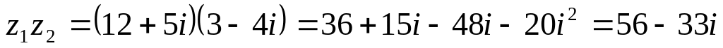 Действия над комплексными числами, записанными в тригонометрической форме. Правила умножения и деления комплексных чисел: