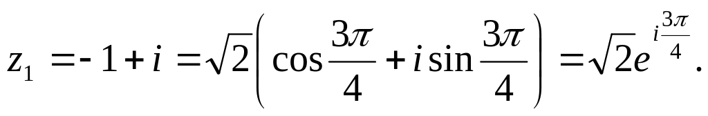 Решение: Согласно формулам комплексных чисел в показательной форме имеем