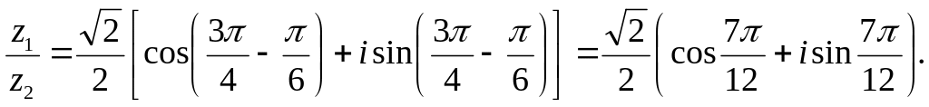 Далее выполняем операции над комплексными числами в тригонометрической форме: