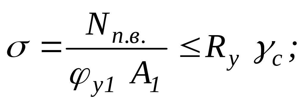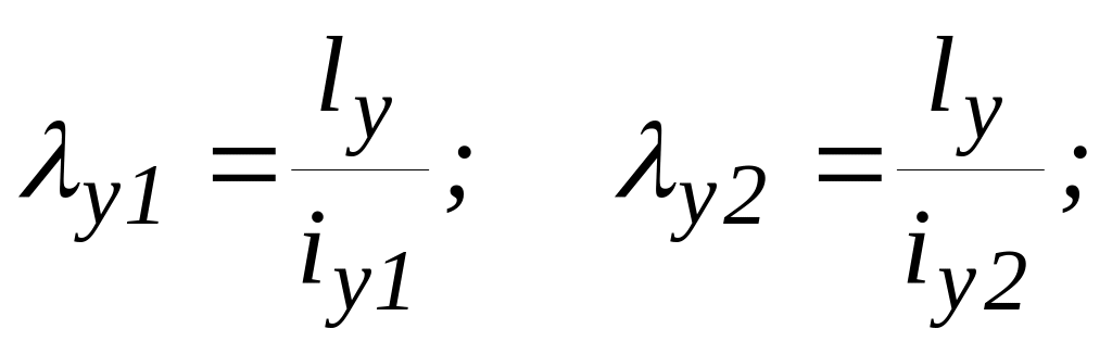 у1 – коефіцієнт поздовжнього згину підкранової вітки відносно власної центральної осі у-у (яка збігається з центральною віссю у-у всього складеного перерізу, оскільки переріз відносно осі у-у є симетричним); у1 визначається за у1 ;