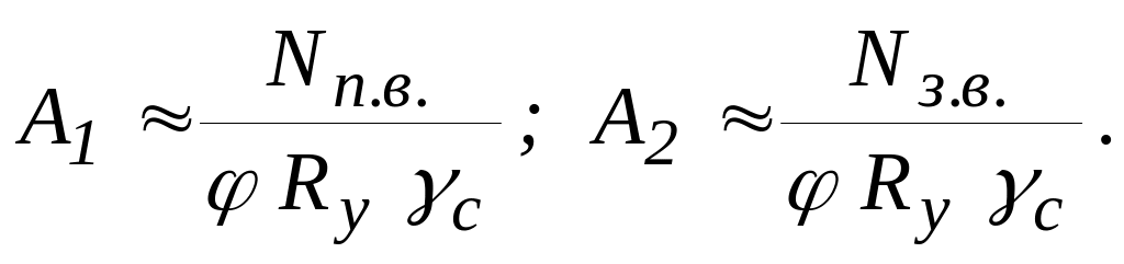 Орієнтовні площі перерізів віток, як центрально-стиснутих елементів: