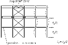 Рис. 12.33. Використання розпірок для зменшення розрахункової довжини віток з площини рами