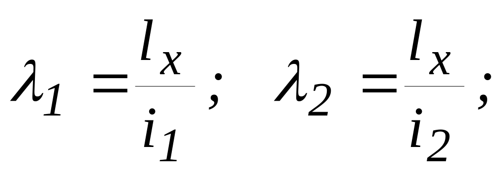 і1, і2 – радіуси інерції відповідно підкранової та зовнішньої віток відносно власних осей 1-1 і 2-2.