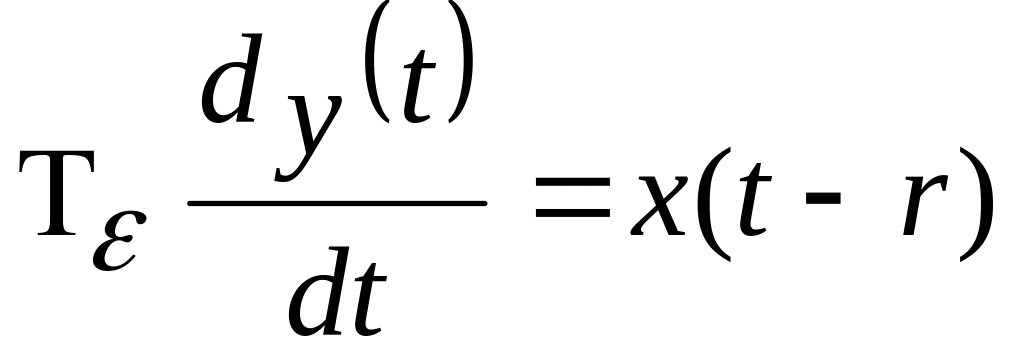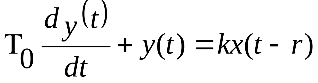 На рис. а) показаны переходные характеристики нейтрального (1) и устойчивого (2) объектов 1-го порядка с запаздыванием. От характеристик без запаздывания они отличаются наличием начального участка длительностью r, в течение которого выходная величина объекта не изменяется. (Величину r называют также транспортным запаздыванием). Уравнение движения этих объектов соответственно имеют вид: