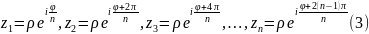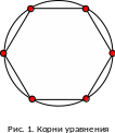 Корни (3) расположены в вершинах правильного - угольника, вписанного в окружность радиуса , имеющей центр в нулевой точке.