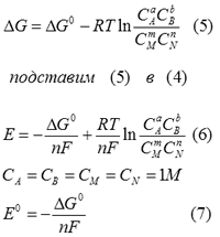 (7) - стандартная ЭДС гальванического эелемента. (7) подставим в (6)