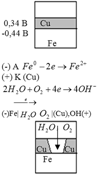 Коррозия может возникать также при контакте двух разнородных металлов или в результате химической неоднородности металла. Каждый металл имеет определенные электрические свойства, характеризуемые рядом напряжений. Роль анода выполняет металл, φ которого меньше, при этом металл в виде ионов переходит в раствор. Катодная реакция протекает на металле, φ которого больше. В зависимости от кислотности среды могут протекать два процесса. В кислотной среде (pH<7) окислителем являются ионы водорода 2H++2e=H20. Если среда нейтральная (рН=7), то окислителем является кислород воздуха O2+2H2O+4e=4OH-.