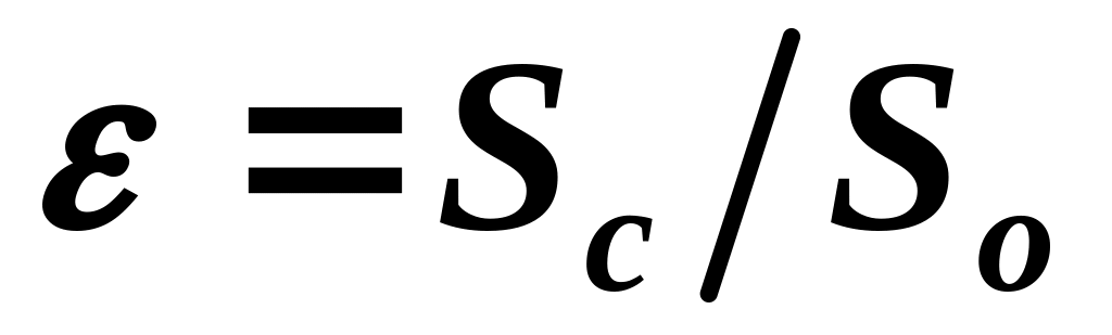 В процессе истечения жидкости из отверстий и насадков на расстоянии l (0,5—1,0)d от плоскости отверстия образуется так называемое сжатое сечение струи. Это объясняется тем, что струйки жидкости внутри сосуда подходят к отверстию по плавным криволинейным траекториям и согласно первому закону механики стремятся сохранить свои траектории в дальнейшем. В результате частицы жидкости сталкиваются, давят друг на друга, вызывая сжатие струи. Сжатие характеризуется коэффициентом , который представляет собой отношение площади сжатого сечения струи Sc к площади сечения отверстия So (см. рис. 1):