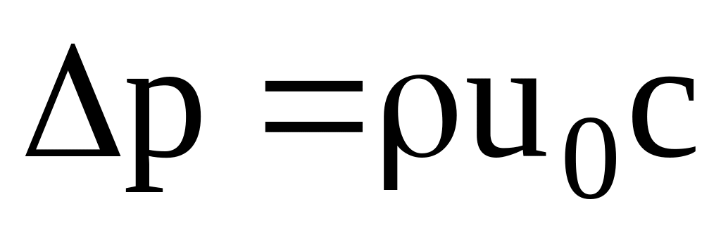 Вследствие малой сжимаемости капельных жидкостей и большой жесткости стенок трубы можно считать, что масса жидкости за время Δt внутри остановившегося объема не изменилась; она равна m = ρSΔl. Изменение скорости составляет Δu = u0 – 0 = u0. Сила f, вызванная изменением количества движения, есть разность давлений на торцевых поверхностях выбранного объема: