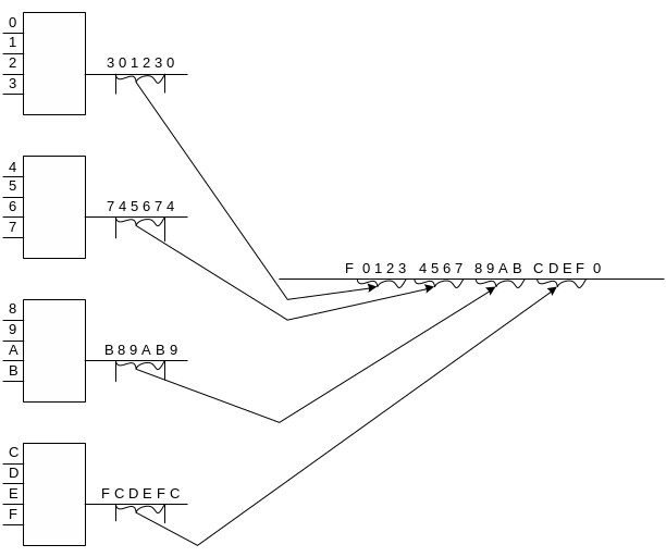 Битовое заполнение транспортного блока идёт слева направо построчно.