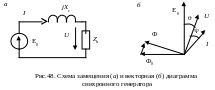 На рис.45 Хс – синхронное индуктивное сопротивление; – угол нагрузки