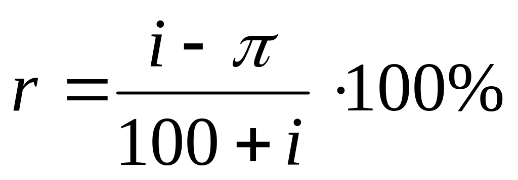2. Итак, реальная ставка процента вычисляется по формуле с абсолютной точностью. Однако на практике и в курсе экономической теории очень часто пользуются не этой (точной), а приближенной формулой расчета реальной процентной ставки: