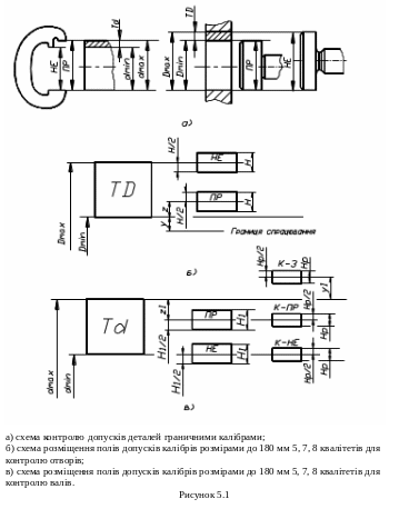 За таблицями 5.1, 5.2 знаходять допуск на виготовлення контрольних калібрів НР.