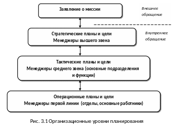 На рис. 3.1 представлена иерархия планов в соответствии с иерархией управления.
