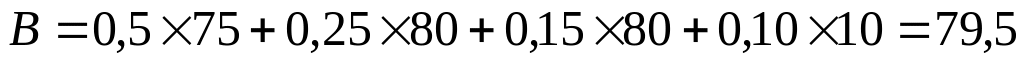 На основе полученных баллов рассчитаем интегральную оценку деятельности (В) по поставке продукции завода Кольчугино: