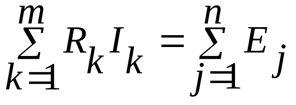 Второй закон Кирхгофа. В любом контуре электрической цепи алгебраическая сумма напряжений на сопротивлениях, входящих в этот контур, равна алгебраической сумме ЭДС контура:
