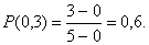 Пример1. Автобусы некоторого маршрута идут строго по расписанию. Интервал движения 5 минут. Найти вероятность того, что пассажир, подошедший к остановке. Будет ожидать очередной автобус менее 3 минут.