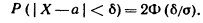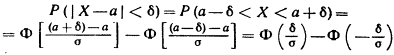 Часто требуется вычислить вероятность того, что отклонение нормально распределенной случайной величины Х по абсолютной величине меньше заданного положительного числа , т. е. требуется найти вероятность осуществления неравенства |x —а|<.
