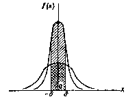 На рисунке наглядно показано, что если две случайные величины нормально распределены и а = 0, то вероятность принять значение, принадлежащее интервалу (-,),больше у той величины, которая имеет меньшее значение . Этот факт полностью соответствует вероятностному смыслу параметра .