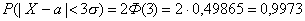 т. е. вероятность того, что отклонение по абсолютной величине будет меньше утроенного среднего квадратического отклонения, равна 0,9973.