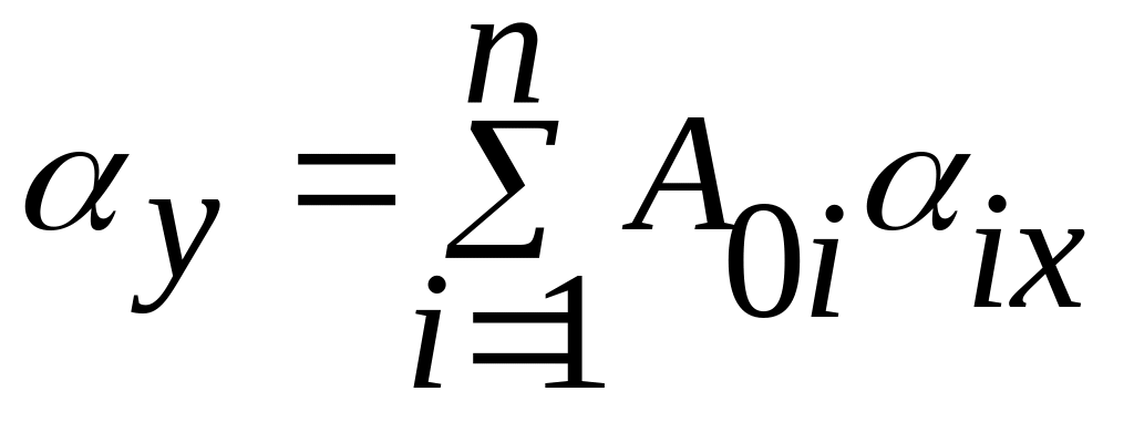 Следовательно, с учетом принятых обозначений будем иметь αу=А01α1x+…+А0nαnx , или
