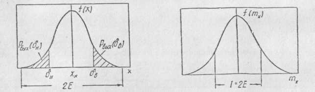 При организации выборки всегда существует ограничение на ее объем, поэтому возникает задача о достаточности объема выборки. В зависимости от ее объема выборочное математическое ожидание будет различным. Можно определить вероятность попадания математического ожидания в заданный интервал +ε, -ε, называемый доверительным. Математическое ожидание для выборок различных объектов распределяется с определенной плотностью (рис. 1.14).