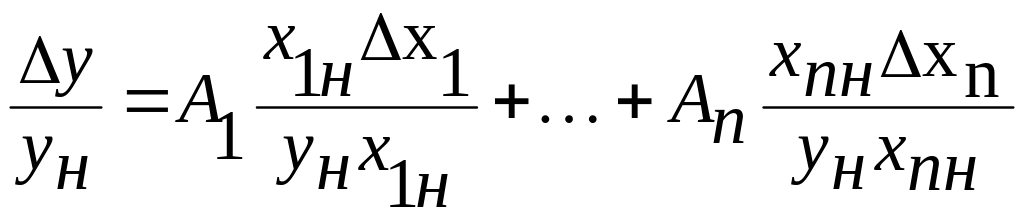 Обозначим А0i=Аi(xiн/yн), — относительный коэффициент влияния i-го параметра на результирующее отклонение; αix=Δxi/xiн — относительное отклонение i-го первичного параметра; αу=Δy/yн — относительное отклонение выходного параметра.