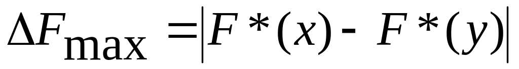 Предположим, что произведено n1 независимых измерений выборки х и n2 независимых измерений выборки у. В результате обработки данных получены две эмпирические функции F*(х) и F*(y). Максимальное рассогласование этих функций по модулю