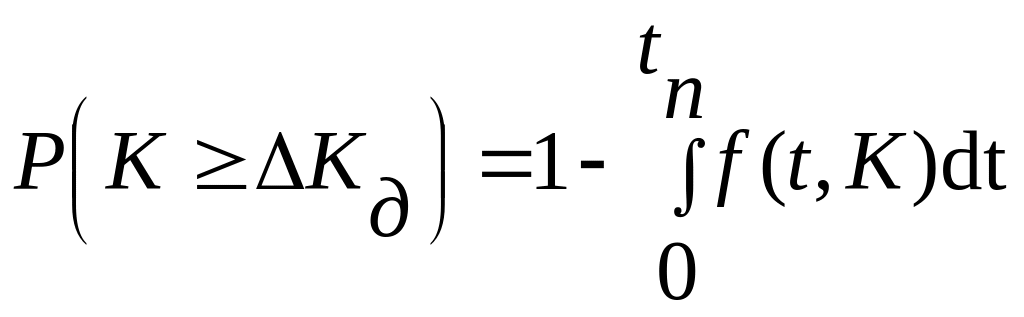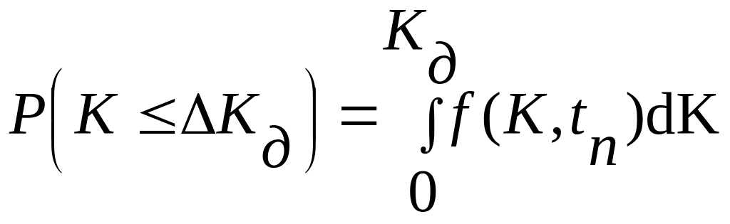 Задачу о нахождении вероятности недостижения в момент времени tп процессом значения Kд можно решить, используя плотность распределения случайного времени (рис. 2.4):