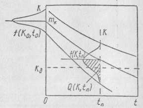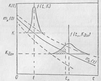Функция mk(t) изображена на рис. 2.2, где f(mk,t0), f(K1,t1)— плотности распределения в сечениях t0 и t1 соответственно.