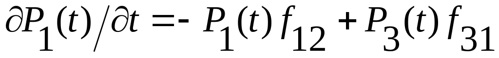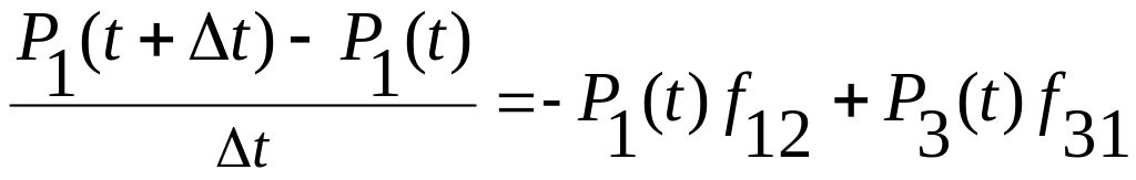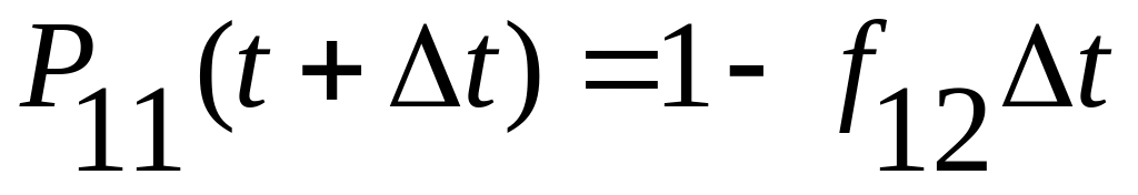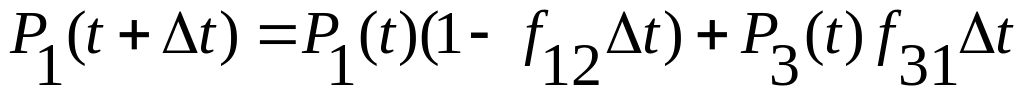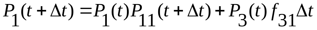 Найдем вероятность того, что система не вышла из состояния Si за время Δt. Система могла задержаться в состоянии Si с вероятностью P11(t+Δt), могла перейти в состояние S2 с вероятностью f12Δt, могла восстановиться за счет состояния S3, т. е. прибавить значение вероятности, равное Р3(t)*f31Δt. Обобщая можно записать