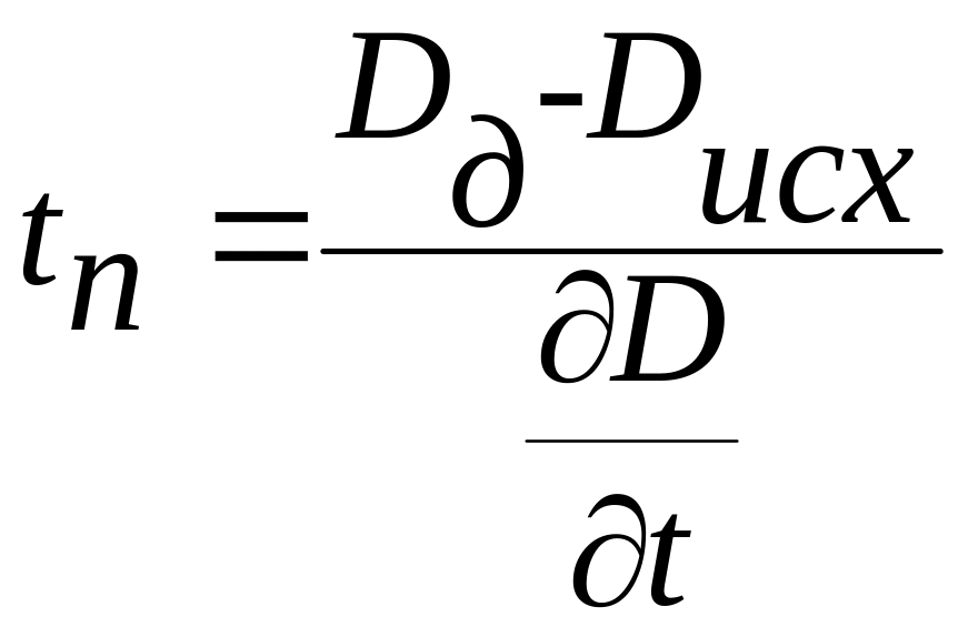 Если происходят изменения в конструкции, то они вызывают изменения вибропроцесса, а следовательно, дисперсия вибропроцесса изменяется. При известном исходном значении дисперсии Dисх и допустимом ее значении Dд можно определить прогнозируемое время tп работы объекта с учетом скорости изменения дисперсии