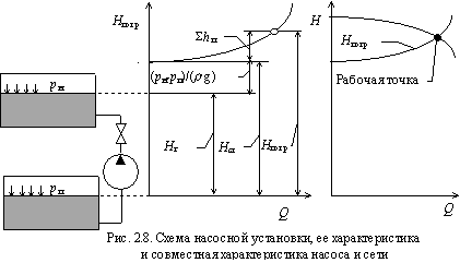 - •24). Рассказать о работе насоса на сеть. Как определить рабочую точку насоса?