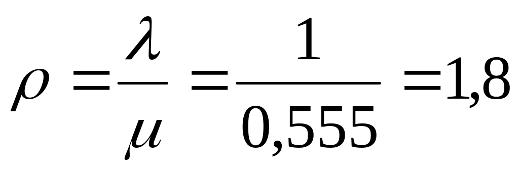 Пример 1. Пусть n-канальная СМО представляет собой вычислительный центр с тремя (n =3) взаимозаменяемыми ПЭВМ для решения поступающих задач. Поток задач, поступающих на ВЦ, имеет интенсивность λ = 1 задаче в час. Средняя продолжительность обслуживания t = 1,8 час. Поток заявок на решение задач и поток обслуживания этих заявок являются простейшими. Требуется вычислить финальные значения: