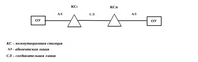 Оконечные устройства соединяются с коммутационной станцией абонентскими линиями. Коммутационные станции между собой связаны соединительными линиями. Коммутационные станции осуществляют соединение входящих линий с исходящими линиями по соответствующему адресу.