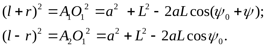 кривошипа. При этом большой отрезок A1O1 определяет сумму длин кривошипа r и шатуна, а меньший A2O1 - разность этих длин.