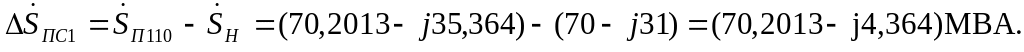п 110 = (70,15732 – j34,844) + (0,044-j0,52) = (70,20132-j35,364) МВА.