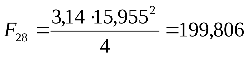 Находим площадь чистового круга F28, мм2 по формуле [2]