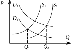 Изменение неценовых детерминант предложения приводит к изменению не величины предложения, а самого предложения, что графически выражается в сдвиге кривой предложения влево (при уменьшении предложения) или вправо (при увеличении) или в формировании новых кривых предложения (что означает изменение всей шкалы предложения).