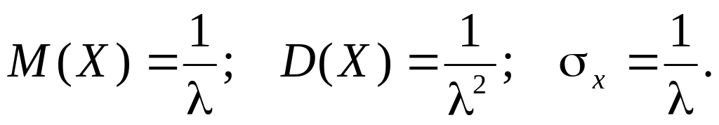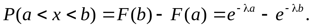 В случае показательного распределения математическое ожидание и среднее квадратическое отклонение равны. Легко определить вероятность попадания случайной величины, подчиненной показательному закону распределения, в заданный интервал.