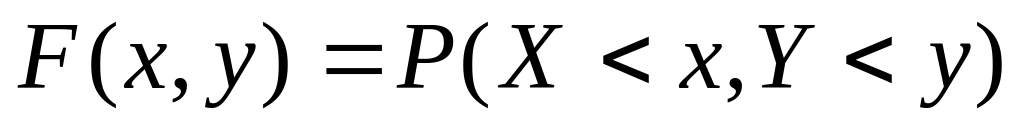 Функцию распределения двумерной случайной величины (XY) (дискретной или нерерывной) называют функцию F(x, y), которая для каждой пары чисел x, y определяет вероятность того, что Х примет значение меньше, чем х, при этом Y – меньше, чем y: .