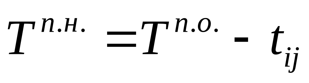 Позднее начало определяется как разность между поздним сроком окончания работы и ее продолжительностью: