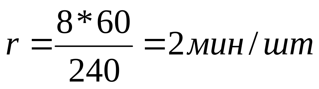 На линии обрабатывается 240 дет. В смену, продолжительность смены 8 ч., норма обслуживания 1 рабочего места — 1 человек.